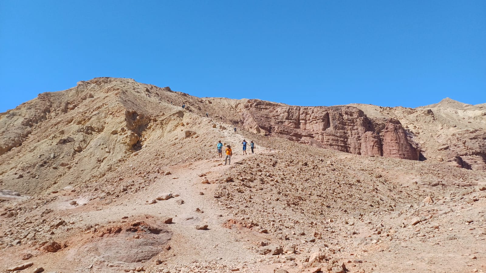 את היום האחרון נתחיל בהליכה קלילה בין הרכסים ונחזור אל המסלול של סובב בקעת תמנע מעל המצוקים והבקעה הצבעונית ונרד בדרכי המבריחים במעלה מלחן אל עמק ססגון והר מכרות. את ההליכה נסיים בין הגבעות והרי אבן החול האדומה והצהובה והשחורה של בקעת תמנע ונצא מהפארק שם יאסוף אותנו רכב אל הרכבים שימתינו לנו בחניון בטוח.