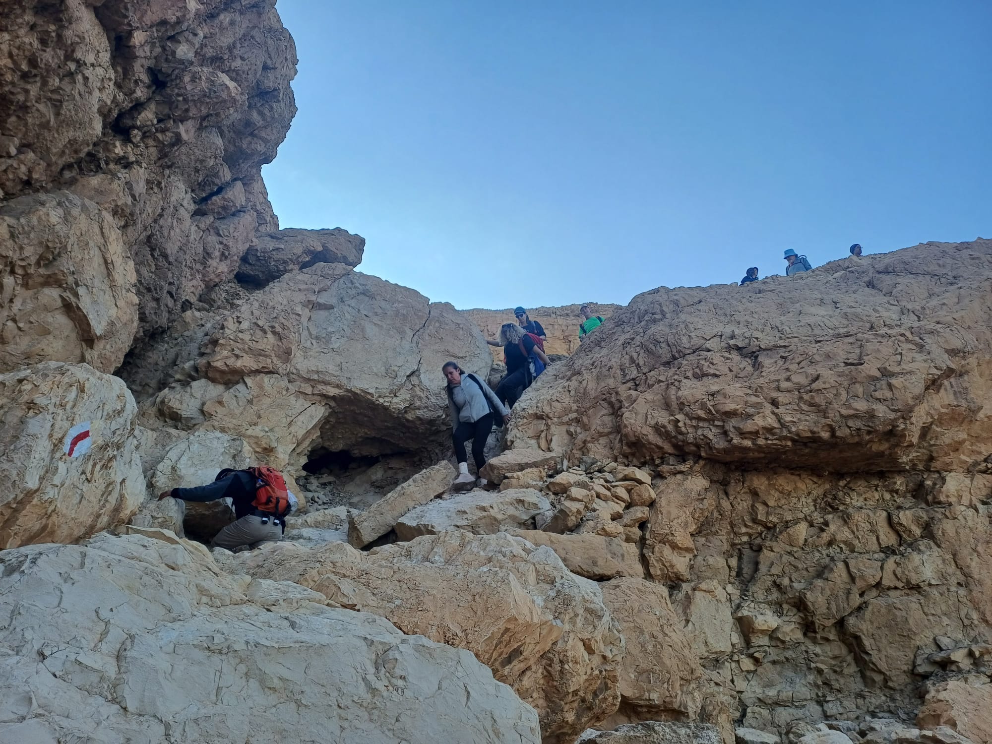 את היום השני נתחיל בעלייה במעלה נחל משמר. נגיע עד לתצפית על מערת המטמון המפורסמת ומשם נטפס בעלייה מעט קשה אל מעלה נחל משמר עד לרמת המדבר. משם נמשיך על רמת המדבר בין כמה מהגבעות/הרים על שם כמה מהדמויות המפורסמות של המרד הגדול ונחצה את נחל חולד והמפל היפה שלו ואת מפל נחל חבר המרשים היושב בדיוק מעל מערת האגרות שהתפרסמה בזכות הממצאים המרתקים שבה. בהמשך היום נחצה עוד קטע קצר ויפה מרמת המדבר עד למצוקים והתצפיות המרהיבות על אזור עין גדי וים המלח ונרד את מעלה צרויה עד למפגש עם הרכבים.